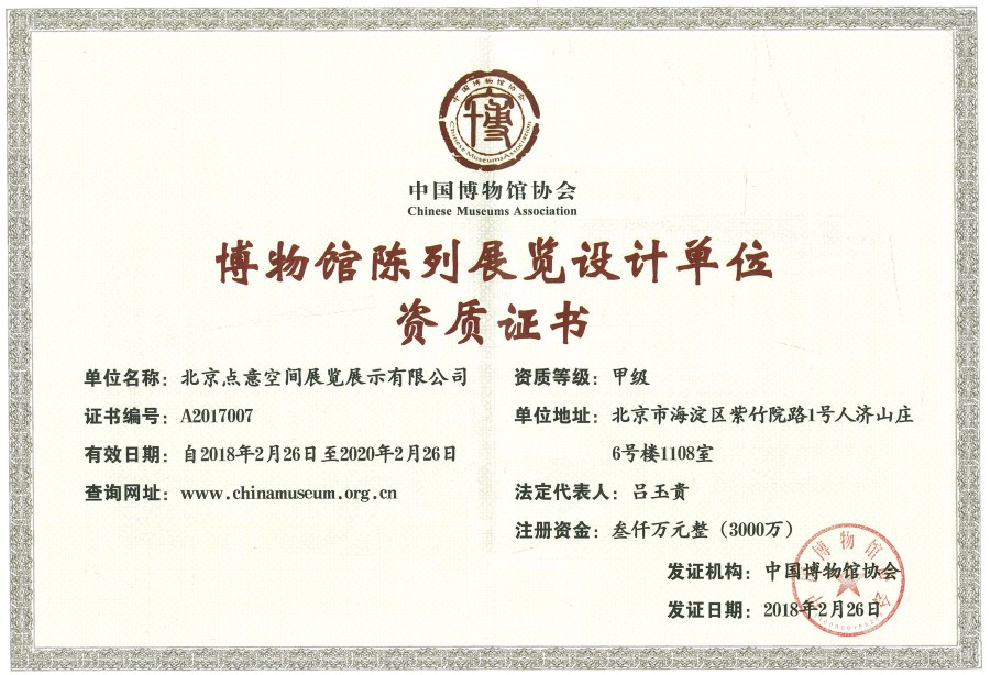 點(diǎn)意空間博物館陳列展覽設(shè)計(jì)單位資質(zhì)證書甲級