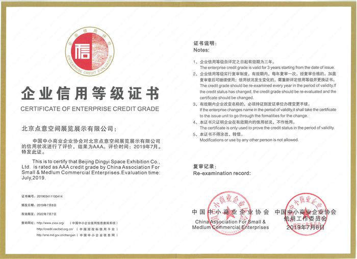 點(diǎn)意空間中小商業(yè)企業(yè)協(xié)會企業(yè)信用等級證書