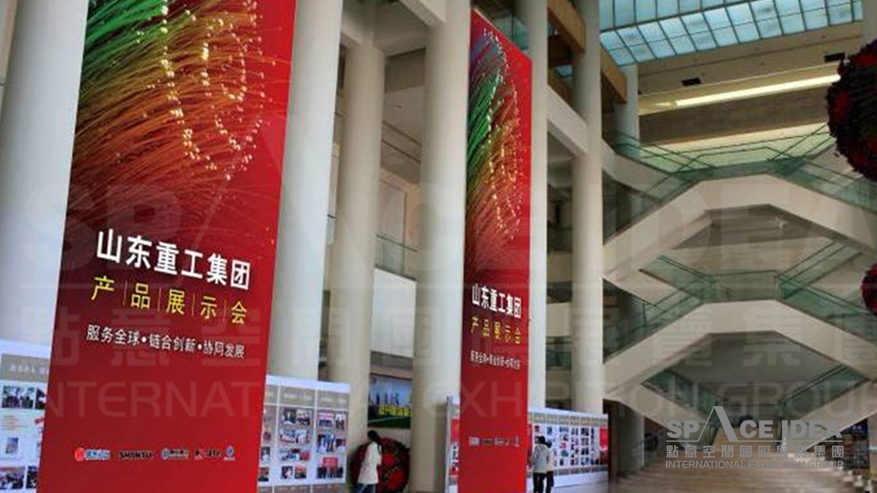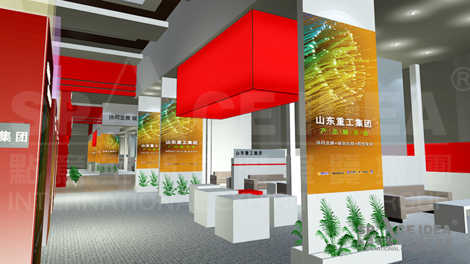 會(huì)場(chǎng)氣氛渲染是除了主展示區(qū)外的區(qū)域。通過(guò)對(duì)會(huì)場(chǎng)內(nèi)外的展示布局,起到宣傳、指示作用。通過(guò)層層引導(dǎo),持續(xù)不斷的視覺(jué)宣傳效果,把本次年會(huì)的氣氛烘托起來(lái),展示出山東重工集團(tuán)的實(shí)力,為本次產(chǎn)品展示會(huì)做好宣傳作用。