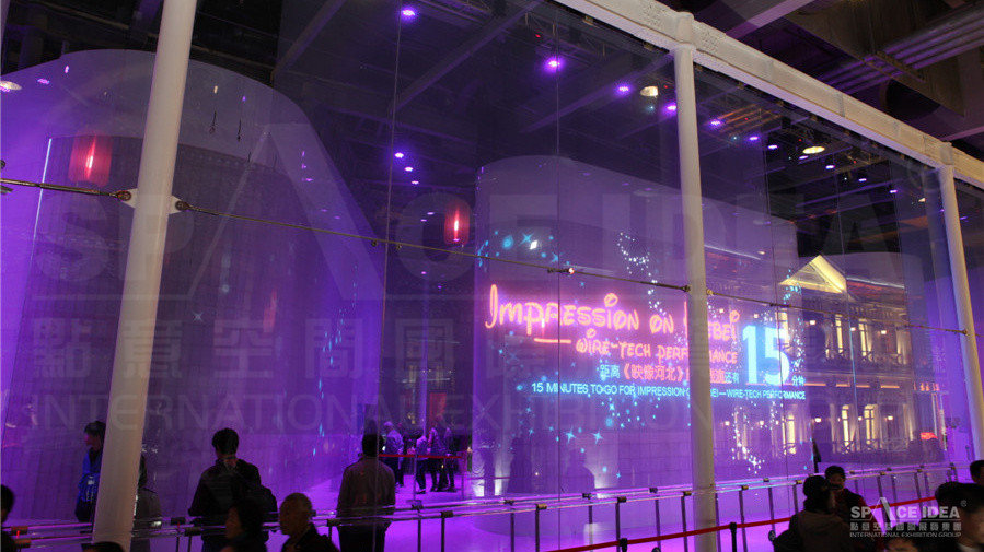 The external exhibition area is an urban experience area where people travel as if they are walking in the city streets of Hebei. Through video clips played on the LCD window on the wall, visitors can learn about the great changes that people in Hebei have in eating, living, traveling, working, etc., so that they can get a new look at cities like Shijiazhuang and Qinhuangdao, reflecting the wisdom of urban life, and explore the contents of industrial restructuring such as the “China Railway High-speed” hometown, the steel province, eco-agriculture, low-carbon cities, and China Power Valley.