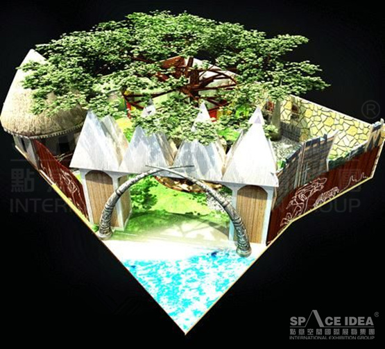 Exhibition Content: There are five areas in the pavilion. Taking "tree" as the core design element, we create various natural environments such as Cameroon plateau, beach and rainforest, and also we use modern display means such as vision, sound, light and electricity to convey the idea of "the beautiful urban community life is a harmonious integration of sky, earth and human".