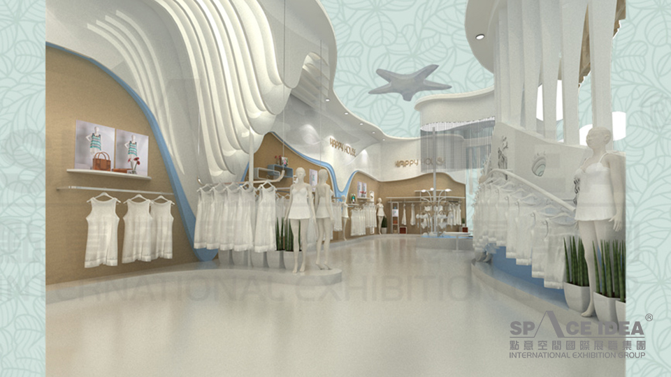 5、將海星吊燈、綠色植物盆栽、模特兒的等所有設計細節(jié)通過整合使整體展廳將輕松、快樂、溫馨等品牌特點完全凸顯出來,使人流連忘返。