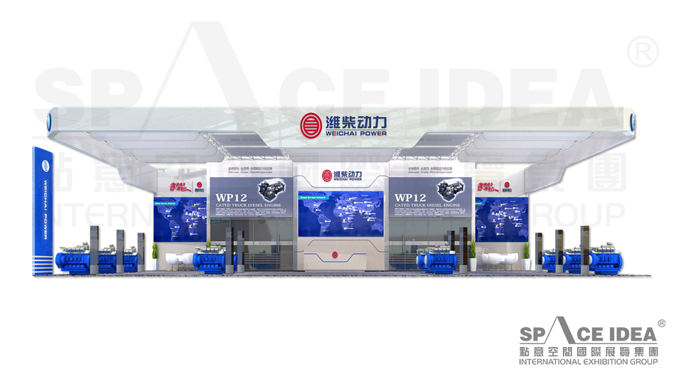 展廳設計要求:針對本次展會20M*10M的展位面積,沿用濰柴動力一貫的設計風格,達到視覺延續性,籍此以提高觀眾的認知程度; 展廳設計主題:“省油動力濰柴行” 展廳設計說明: 1、采用濰柴一貫的風格, 2、通過燈光效果凸顯產品 3、LED屏介紹產品,加深參展者印象