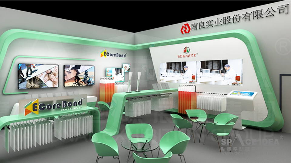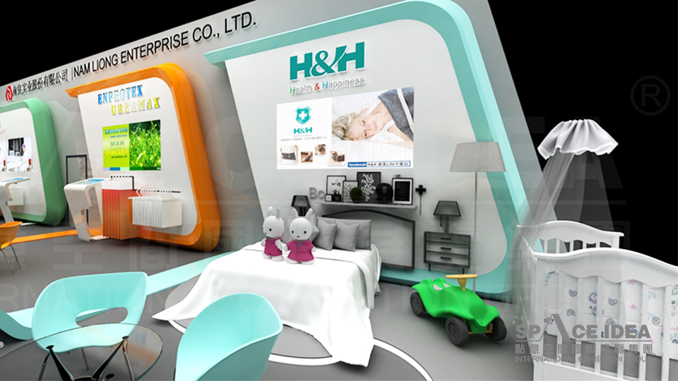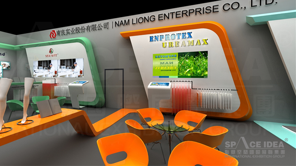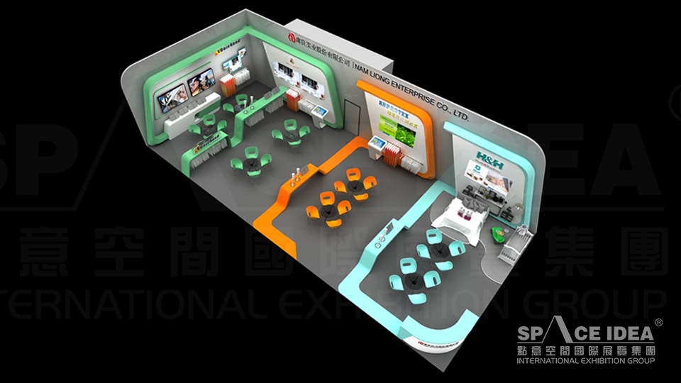 整個展臺由藍色、橙色、綠色分割成三部分,分別展示南良實業(yè)的三大類產(chǎn)業(yè):健康及醫(yī)療用品、綠色無公害食品及綠能節(jié)能產(chǎn)業(yè),寓意著南良實業(yè)的企業(yè)愿意:健康、快樂與希望。整個設(shè)計結(jié)構(gòu)嚴謹、條理清晰,配合發(fā)光字、觸摸屏及燈箱畫面,詳細展示了南良實業(yè)「對生命之尊重、對環(huán)境之愛護」的核心價值觀。