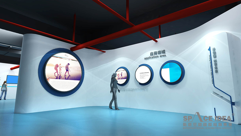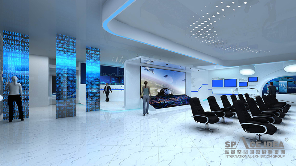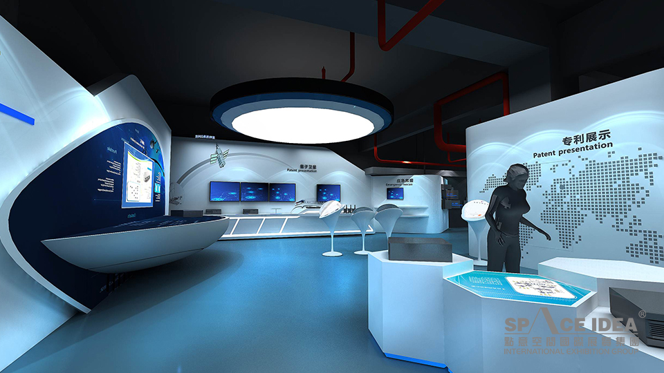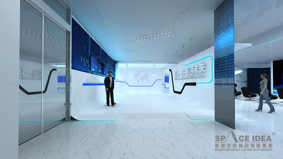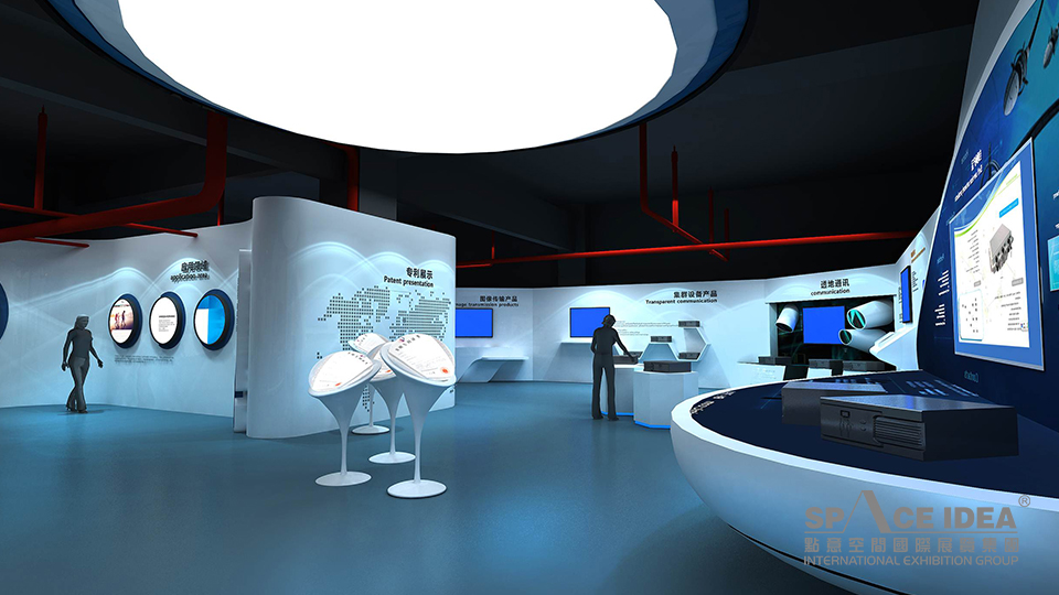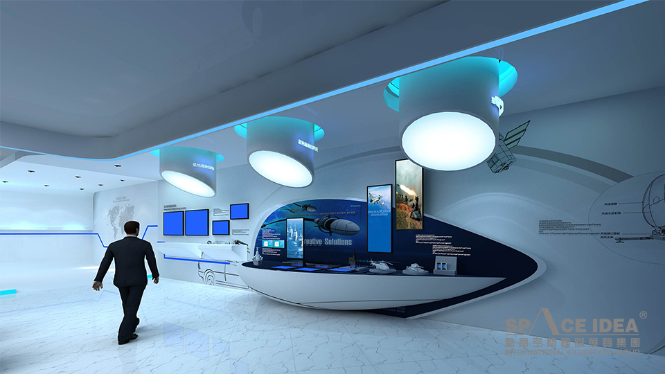 科技感和未來感:展廳以充滿未來感和科技感的白色和藍色為主,呼應企業產品應用領域海洋和星空,并以藍色象征夢想和未來;