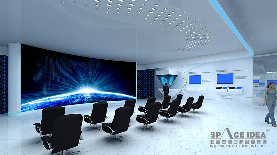 模塊化:產品匯報廳核心涉密區的區域以功能劃分不同的空間,利用不同的互動和演示裝置,提供舒適的觀看環境,打造炫酷的視覺效果;
